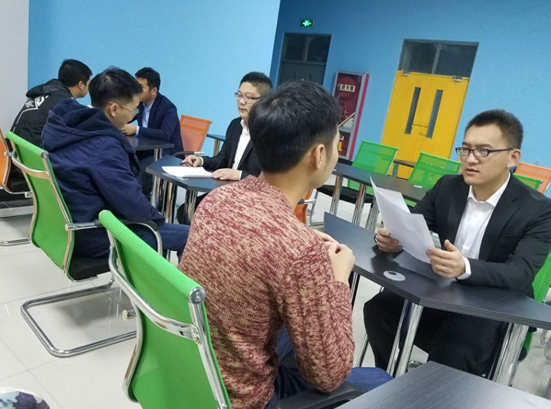 首先梁晓同学向大家讲解了面试技巧,比如在面试过程中需要穿着得体,同时注意语言表达的逻辑等。接下来进行了现场模拟面试环节,由曹文辉、赵正、姬帅等已就业同学担任面试官,其他到场的同学作为应聘者,整个面试流程分为自我介绍、技能展示、职场问答三个环节,面对面试官的提问,大家都能彬彬有礼,从容应答,从不同角度展示自己的特长,并结合所学专业,展示自己特有的优势。