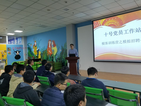 为了让同学们切身了解到不同职位的基本素质和要求,从而更好的完善和提高自己,增强就业信心,提高求职几率。12月4日十号党员工作站极客训练营之模拟招聘会在东区食堂三楼创咖活动中心举行。出席本次会议的有十号党员工作站站务委员、学生党员、学生预备党员以及学生入党积极分子,本次会议由站长梁晓主持。