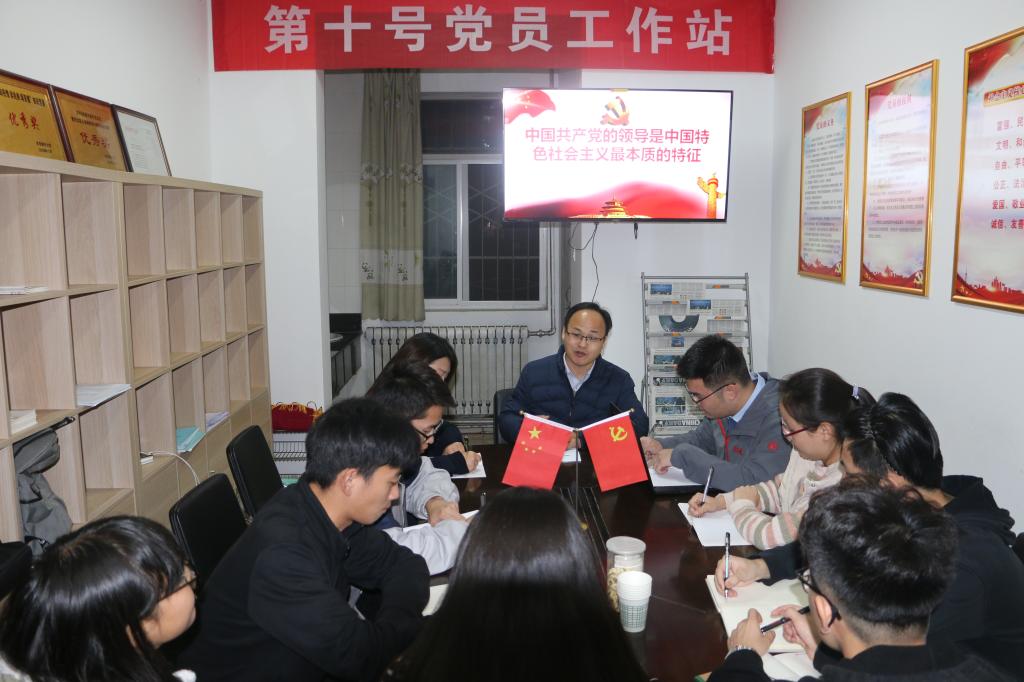 10月24日晚,按照学校“百名先进进公寓”活动安排,校党委委员、人事处处长、教师工作部部长韩江卫,深入hjc黄金城官方网站牵头建设的第十学生公寓党员工作站,作题为《中国共产党的领导是中国特色社会主义最本质的特征》的辅导报告。党员工作站指导老师王欣研以及站务委员代表参加会议。