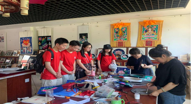 在藏传佛教圣地塔尔寺、八瓣莲花非物质文化遗产传承体验中心和青海藏文化博物馆,实践团亲自体验了非物质文化遗产——唐卡的制作过程,参观了少数民族艺术馆藏,队员们表示少数民族文化需要传承和发展创新,作为当代大学生一定要增强四个认同,维护民族团结,弘扬民族精神,传承民族文化。