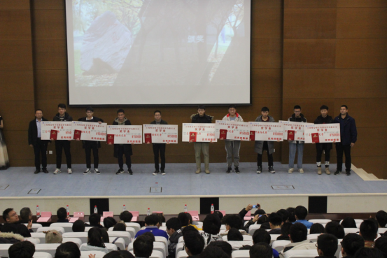 基础课程成绩优秀个人代表光电1708郭丹敏、优秀班集体代表科技1801支述冉、考研优秀个人闫冬冬以及助学金获得者马鸿基等上台发言,感谢学校的培养和老师的辛勤教导,感谢上海维安电子有限公司给予他们的鼓励和支持,并分享了他们大学成长之路和感悟。