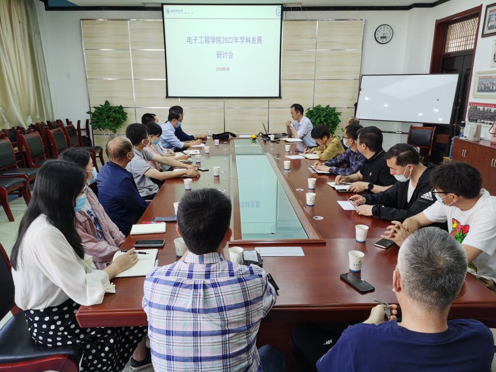 董军首先就“学校2022年高质量发展观测点”“学院十四五学科发展规划”“第五轮学科评估及软科观测点”等向各团队负责人进行汇报,一起学习了“中国电子学会”“中国光学学会”等国家级行业学会专委架构,研讨了我院“电子科学与技术”“光学工程”学科的学科方向合理性。接下来,董军就新聘期学院探索实行“科研型团队”“学术特区”“学术前沿”等模式的可行性向各科研团队负责人进行意见征集。各团队负责人踊跃发言,积极探讨,献计献策,气氛热烈,彰显了各团队“电院是我家,发展靠大家”的主人翁精神面貌。与会人员对学校当前实行的科研激励政策进行了探讨,科研处处长赵峰教授现场给予解答和回复。