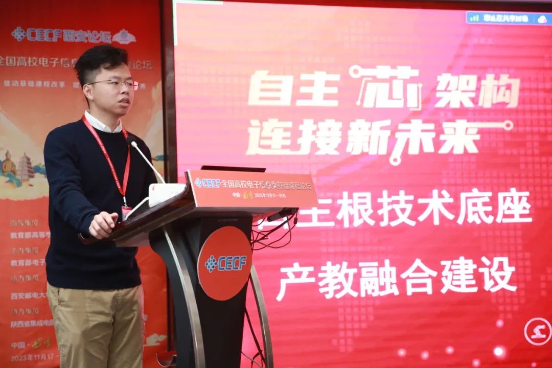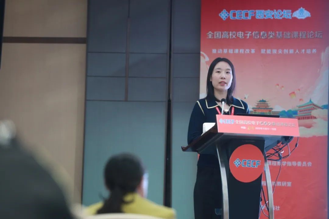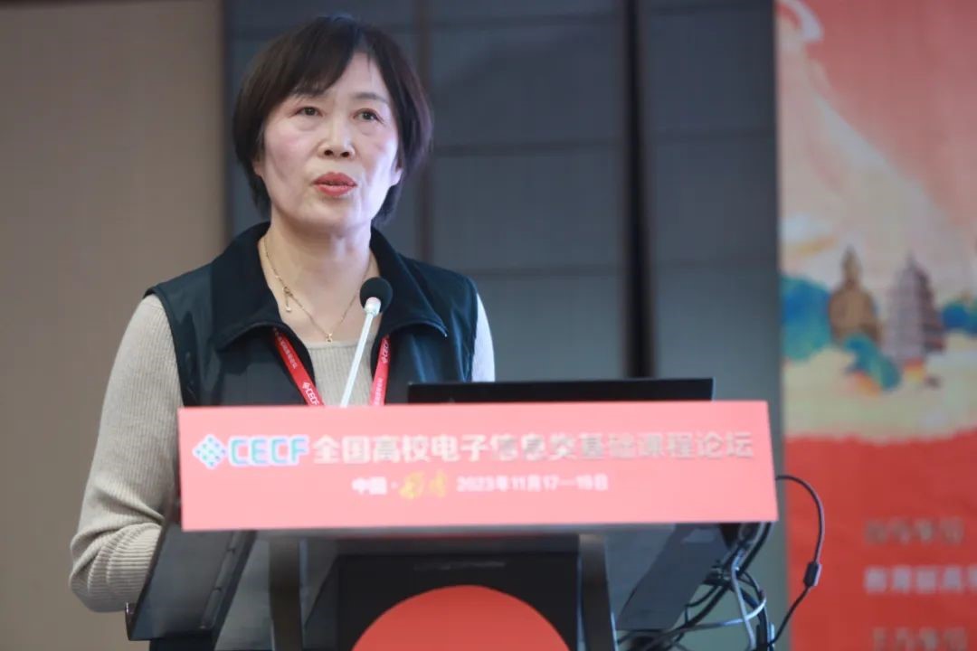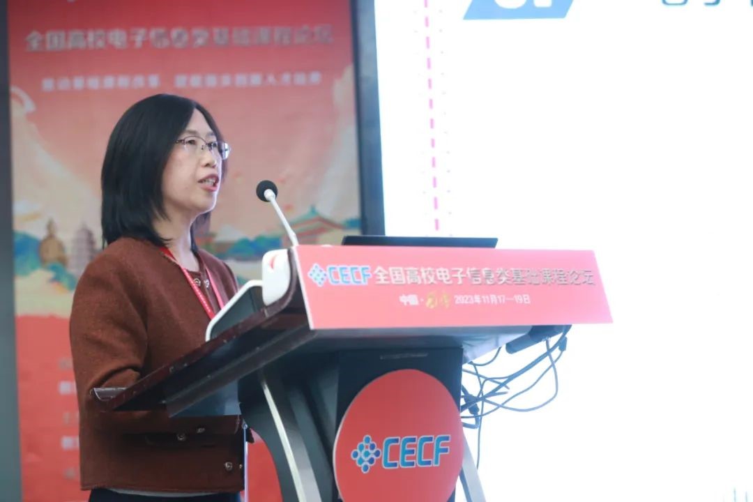 学术报告环节,北京邮电大学、北京航空航天大学、北京交通大学、华中科技大学、西安电子科技大学、西北工业大学、hjc黄金城官方网站、宁夏大学、龙芯中科技术股份有限公司等高校和企业的14名电子信息领域的教学名师、青年学者,分别从教学能力研究、基础课程研究等方面内容作主题报告,分享了相关经验和方法。