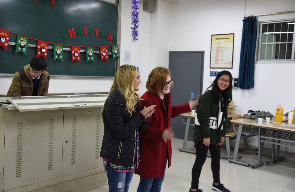 2016年12月22日晚,在基础教学楼A233、A237我院中英班举办以“温馨大家庭,走向国际化”为主题的迎新年活动。活动邀请了两位美国交流生作为嘉宾,2016级和2015级中英班全体学生参加。