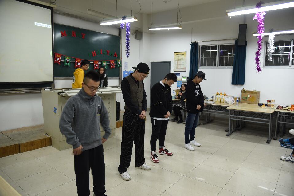 在欢快的开场音乐中,主持人以中英双语介绍了本次活动的基本情况,电子16级的张新和他的同伴带来街舞表演(Hip-hop show)惊艳全场,大家的参与热情也被调动起来。随后,通过游戏“击鼓传花”的形式,同学们与美国交流生积极沟通,了解美国文化与传统。之后同学开始了一个个别开生面的小游戏,如“报名字”,“教室寻宝”等。活动在愉快和谐的氛围中圆满结束。