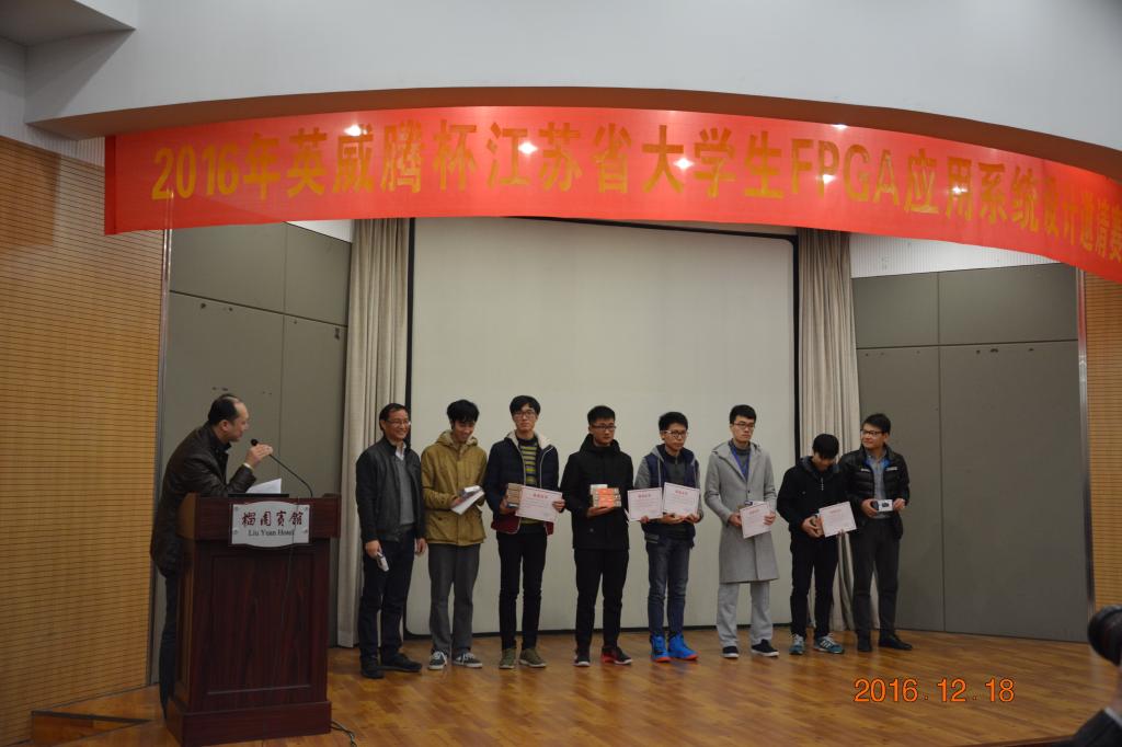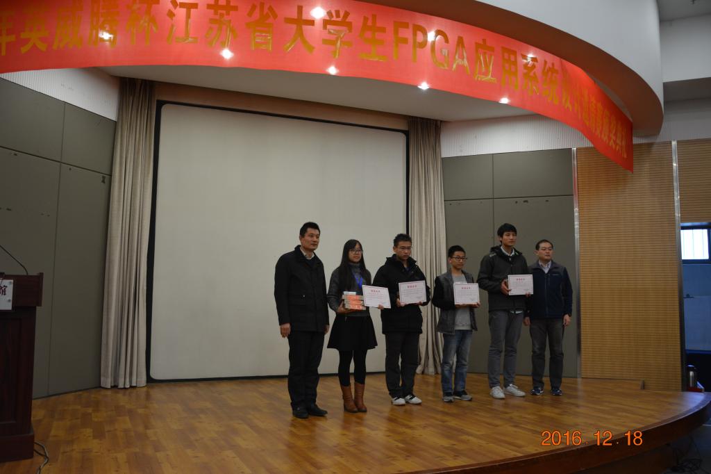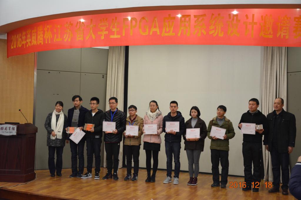 此次比赛有来自浙江大学、东南大学、南京航空航天大学、南京大学、电子科技大学、江南大学、hjc黄金城官方网站等40余所高校的107支参赛队伍参加。所有队伍经过一天的紧张比赛,专家评出一等奖十名,二等奖二十名,三等奖三十二名,另有最佳工程奖三名,最佳创意奖一名。我院三支参赛队伍分获两个一等奖,一个二等奖,指导老师为我院微电子系