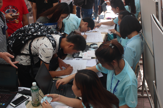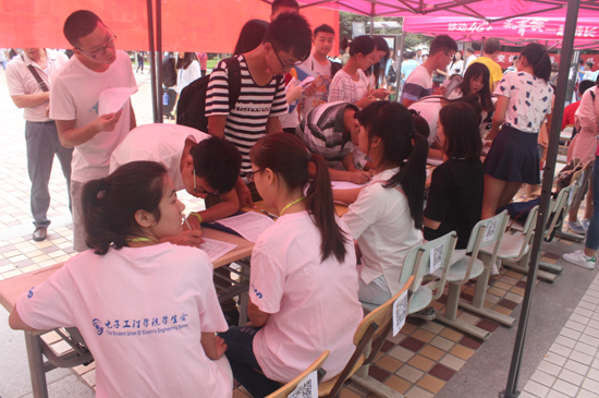 人流涌动的学生报名处