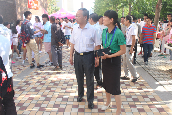 期间,我院院长巩稼民、党委书记苗忠、副院长刘继红、党委副书记李莉等学院领导及各级辅导员坚守在迎新第一线,现场指挥、安排工作,并与学生家长亲切交谈,全力解决学生家长的各种疑问。随后,校长范九伦、副校长贾明远、副校长安增旺、党委副书记刘永昌等校领导莅临我院新生报到处进行现场检查并指导迎新工作。校领导对我院不畏炎热坚守工作岗位的老师和学生志愿者表示慰问,并详细询问了同学们入学第一天的感受和遇到的困难,祈愿同学们能够尽快适应新环境,筑梦西邮。
