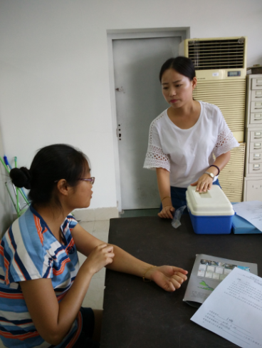 很快,中华骨髓库的工作人员驱车来到学校找到弓楠老师,为进行下一步的高分辨分型检测实验,抽取了2管血样,一旦检测成功,就可以捐献造血干细胞。