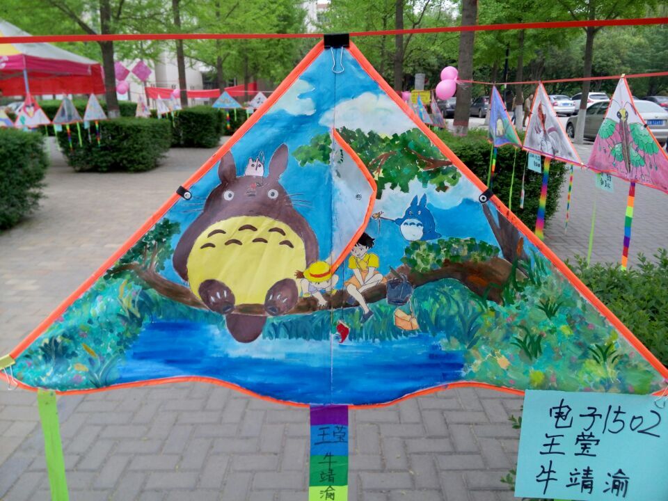 学生们利用寒假时间阅读《追风筝的人》,被其史诗般历史景观和荡气回肠的人性故事所感动。以此为契机,我院学生会宣传部面向全校全生举办了风筝涂鸦活动。首先,由学生们自己动手在风筝上进行DIY创意涂鸦,然后在银杏林举行风筝艺术展,此次大赛共收有作品近两百件,作品题材广泛。通过自己亲手创作的风筝,让身处繁重课业的同学们有了一丝回味童真的的机会。