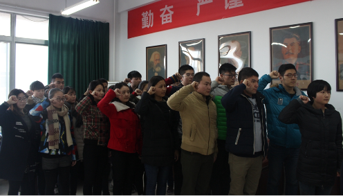 12月25日下午,hjc黄金城官方网站党委在该院会议室举行13号公寓楼13级党支部预备党员宣誓仪式。该院党委书记苗忠、党委副书记李莉、13级全体辅导员及58名预备党员参加。 奏唱国际歌之后,宣誓仪式正式开始。领誓人叶冉带领全体预备党员面向党旗宣读入党誓词。预备党员代表李佳易发言,他表示将严格要求自己,决不辜负组织上的信任。随后,老党员代表王晓也进行发言,她希望所有预备党员能够用党员的身份约束自己,做好榜样。苗忠向全体预备党员提出四点要求:一是坚定信念,忠诚于党;二是牢记宗旨,全心全意为人民服务;三是认真学习,掌握本领;四是克己慎行,模范带头。苗忠希望全体预备党员提高政治素养,用更高的标准要求自己,做到在思想上、行动上入党。最后,在场全体党员起立奏唱国歌。