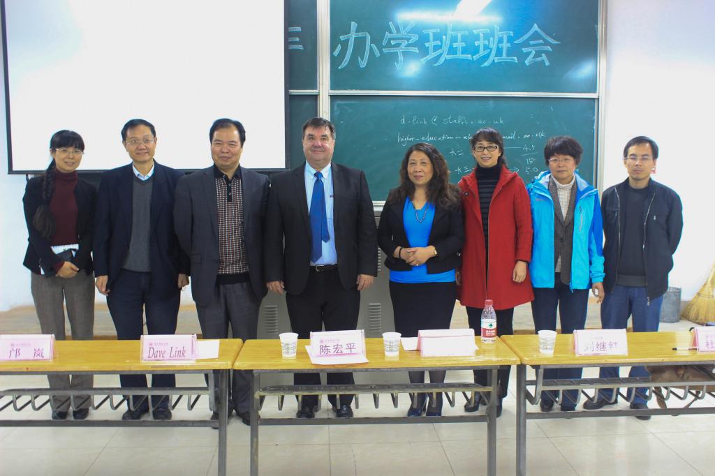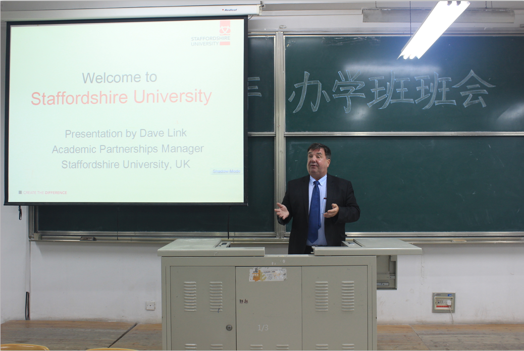 10月28日晚,在基础教学楼A130室召开了中英合作办学班班会。出席班会的有英国斯坦福厦大学代表Dave Link教授、英国国际教育联盟代表团邝岚博士、我校国际合作与交流处处长陈宏平、副处长王红蕾以及我院院长巩稼民、副院长刘继红、党委副书记李莉及中英合作班全体同学,班会由副院长杜慧敏主持。