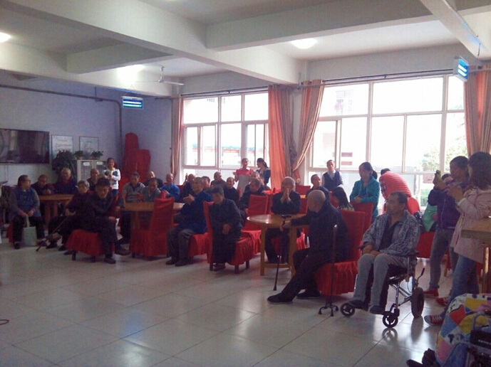 演出在爷爷奶奶们热烈的掌声中拉开帷幕,在龚昱铭的代领下大家陆续入场。开场动感的《小苹果》广场舞随即带动了全场观众的热情。随后,一首温婉的歌曲《越单纯越幸福》娓娓道来,感染全场。在合唱《朋友》后,主持人张晓凡的诗朗诵《雨巷》深深打动了爷爷奶奶们。小时候,总是向你索取,却不曾说声感谢,而今,多想牵你温暖手掌;之后一曲《父亲》深情地表达了子女们对父亲的无限感激与尊敬。随后,谢泽群展示的擒敌拳潇洒有力,高艳用歌声讲述的《四渡赤水出奇兵》带领敬老院的爷爷奶奶们仿佛回到了那个战火纷飞,英雄抛头颅,洒热血的年代。接下来的《军歌串烧》回忆了军旅的点点滴滴,场下掌声雷动。最后,张雪演唱的《外婆的澎湖湾》为本次演出画上了圆满的句号。期间,同学们和老人家亲切交流着,关心老人生活上是否便利,还倾听老人们聊起了他们的人生经历,房间里一片欢声笑语。