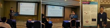 我院光电子技术系教师任凯利博士在会场上作了题为“Fabrication of novel long-period fiber gratings with a CO2laser fusion”的研究报告,介绍了一种基于CO2激光熔接平台制作新型(螺旋型和微锥型)长周期光纤光栅的方案,以及该光栅的高灵敏度传感、偏振滤波和轨道角动量调制等应用特性研究。韩冬冬老师作了题为“Flexible, tunable ultrafast fiber laser mode-locked bycarbon nanotubes”的口头报告,向与会同行专家介绍了课题组在超光光纤激光器波长调控领域取得的最新研究成果及进展。张建磊老师作了题为“Dielectric metasurface-based lens array for integral imagingdsisplay with tunable focal length”的张贴报告,介绍了介质超表面在真三维显示中的应用前景,提出了一种偏振敏感的可调焦超透镜。