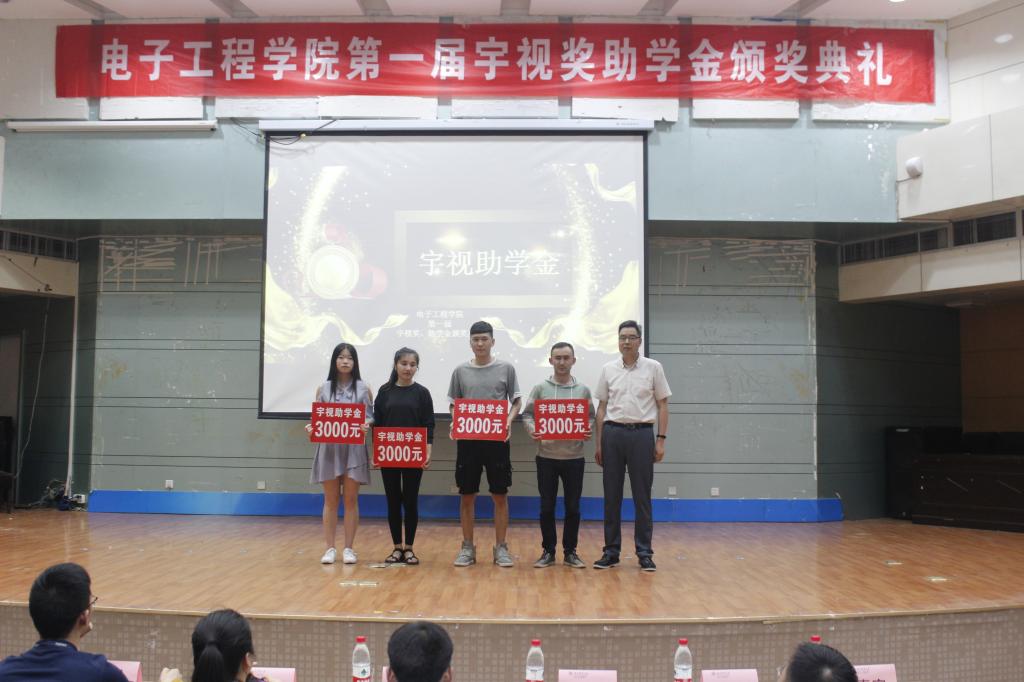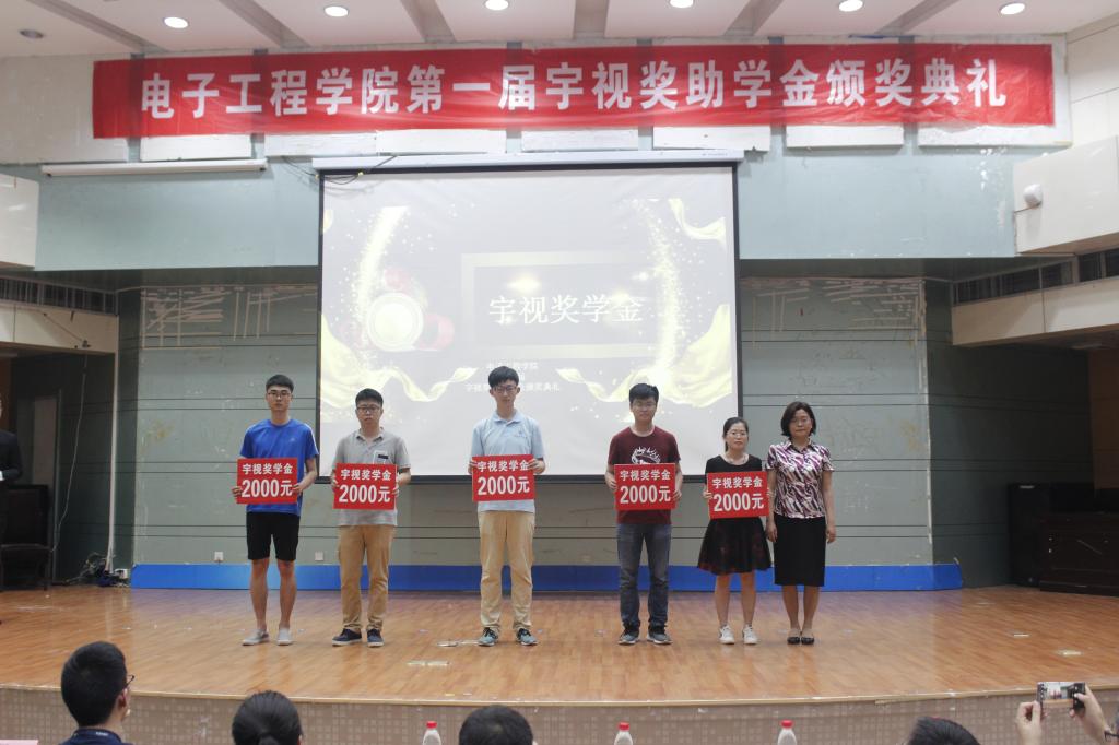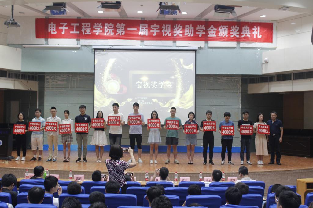 在第一届“宇视奖助学金” 颁奖典礼上电工院党委书记马斌奇分别为17名受资助学生颁发宇视助学金,三个等级助学金金额分别为1000元、2000元和3000元;电工院院长杜慧敏为5个获得省级竞赛一等奖以上的优秀团队颁发宇视奖学金,每个团队奖励2000元;浙江宇视科技有限公司副总裁张浙亮为15名考上双一流大学硕士研究生优秀学子颁发宇视奖学金,每个学生奖励4000元。