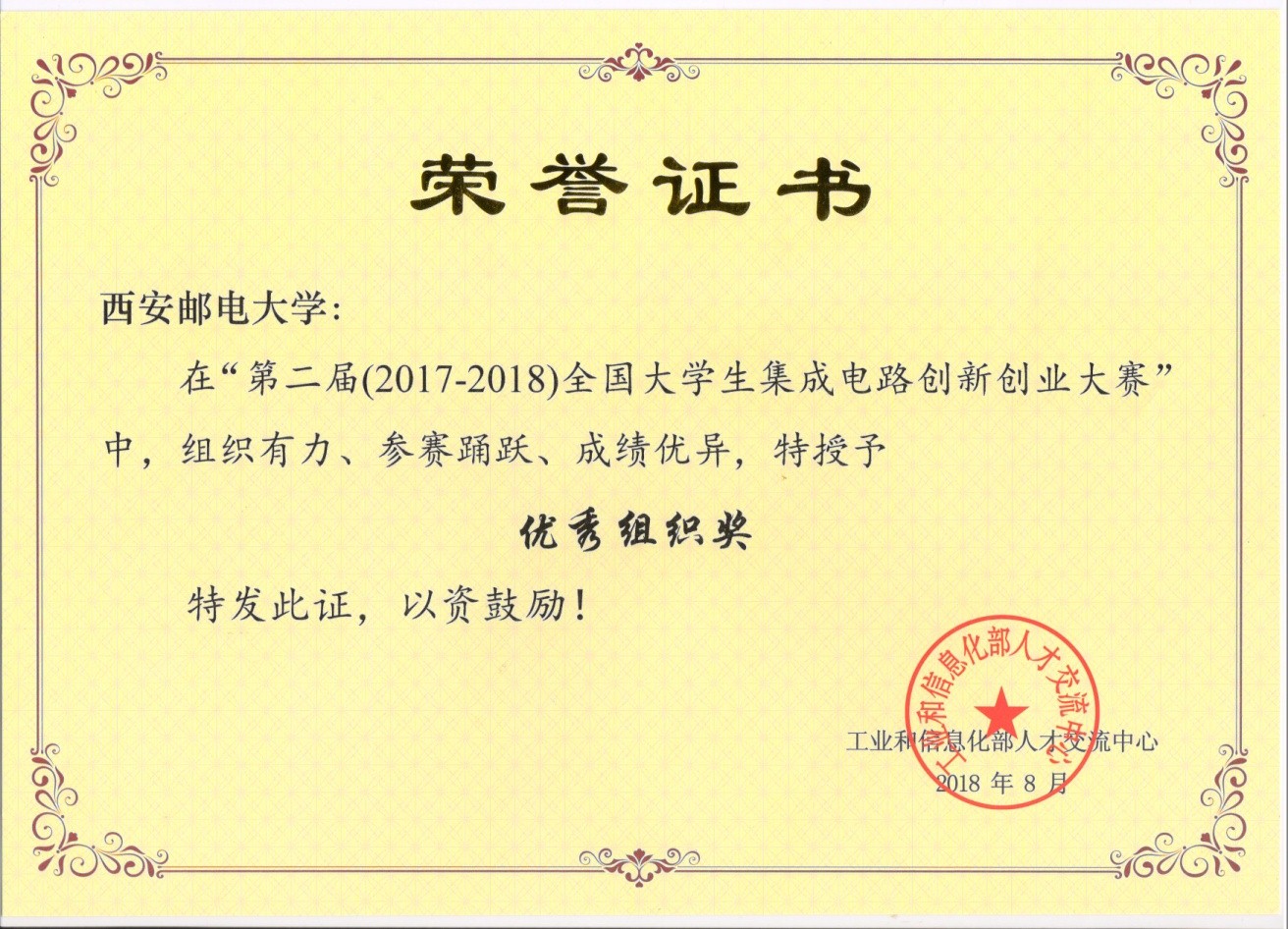 “全国集成电路创新创业大赛”共有来自全国各地包括清华大学、中国科学院大学、复旦大学、上海交通大学、西安电子科技大学、西安交通大学等140多所高校的1000多支队伍参加,经过华北、华中、华南、华东、西北、西南六大分赛区选拔,共有53个高校的183支队伍进入全国总决赛。我校共有11支队伍参加了西北分赛区的比赛,由hjc黄金城官方网站佟星元副教授指导,李茂、杨安迪、李智三位研究生组成的“天下归芯”团队,参赛作品为“新型快速响应低压差线性稳压器”,荣获西北赛区二等奖,进入全国总决赛。2018年8月24日,“全国集成电路创新创业大赛”总决赛在江苏南京落下帷幕,hjc黄金城官方网站“天下归芯”团队作为我校唯一进入总决赛的参赛队伍,荣获全国总决赛“设计及应用创新杯”三等奖,佟星元副教授获得优秀指导教师,为hjc黄金城官方网站赢得优秀组织奖杯。
