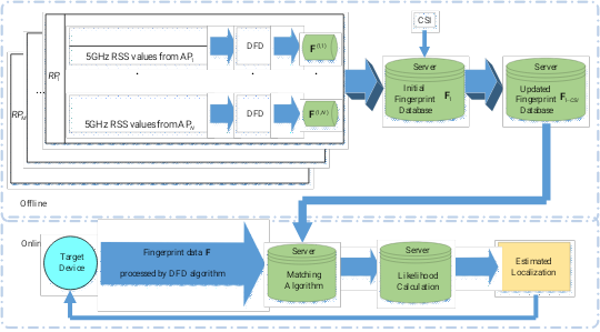 论文主要针对使用单一频率的信号强度进行指纹室内定位时,受到多径衰落、阴影效应和室内多变环境影响,致使定位精度受限的情况,利用普通路由器自带2.4GHz和5GHz双频的优势,提出了采用路由器的双频差作为指纹数据的定位策略,有效抑制了环境影响和异构器件对定位精度的影响,并且引入插值算法提高了指纹数据库的更新效率,在社会生活领域有广泛应用价值。