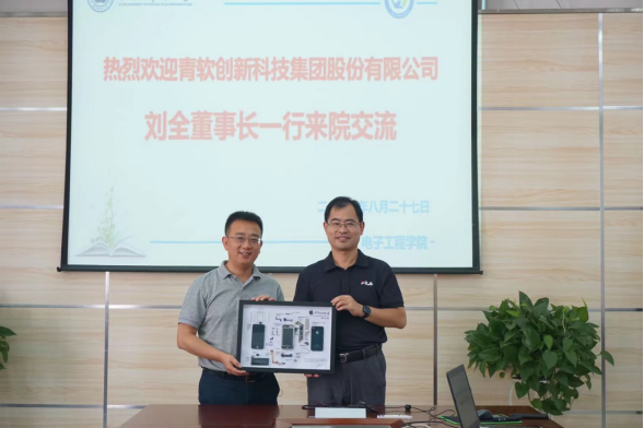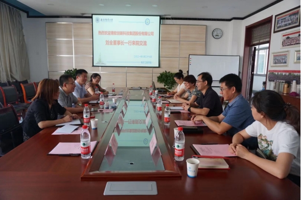 2021年8月27日,青软创新科技集团股份有限公司刘全董事长一行5人来我校进行合作交流,我校副校长卢光跃教授,hjc黄金城官方网站院长杜慧敏、副院长邓军勇等人参加座谈。
