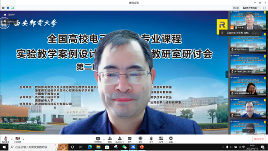为进一步提升电子信息类专业课程的实验教学质量,2022年10月15日,由教育部高等学校电子信息类专业教学指导委员会指导,国家级实验教学示范中心联席会电子学科组、中国电子教育协会主办,西安电子科技大学与我院承办,普源精电科技股份有限公司协办的“全国高校电子信息类专业课程实验教学案例设计竞赛-西部赛区初赛”通过腾讯会议方式在线上举行,我校副校长卢光跃、我院院长杜慧敏以及来自西安交通大学、西安电子科技大学、重庆大学、电子科技大学、空军工程大学、兰州理工大学、宁夏大学、四川大学、西南交通大学、昆明理工大学等相关高校以及我院的代表一百余人参会。我院副院长邓军勇教授主持比赛开闭幕式。