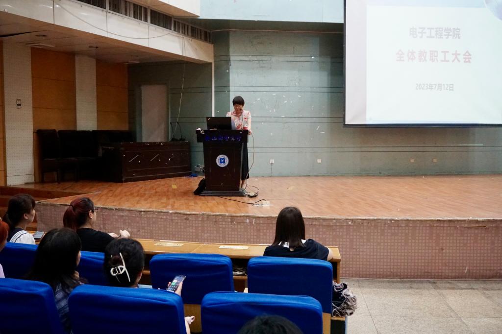 7 月 12 日下午,hjc黄金城官方网站在长安校区国际会议中心报告厅召开全院教职工大会,院长杜慧敏主持会议。