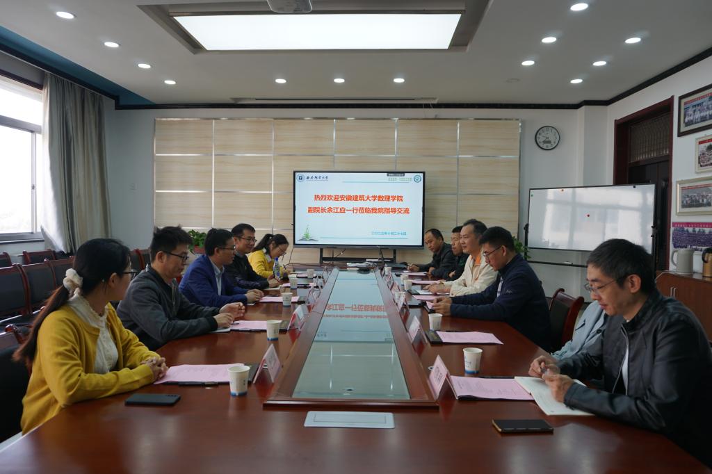 邓军勇首先对安徽建筑大学各位教师的到来表示热烈欢迎,并请来宾观看了我院宣传片,董军介绍了我院教学科研整体情况。余江应对我院的热情接待表示感谢,介绍了安徽建筑大学数理学院概况和交流调研重点。随后,马瑞琼从专业概况、培养目标、培养方案、课程建设等方面详细介绍了光电信息科学与工程专业,并就专业认证相关内容做了详细的交流讨论。双方就光电信息科学与工程办学中教学管理、资料归档、授课形式、课程建设等进行了深入讨论。
