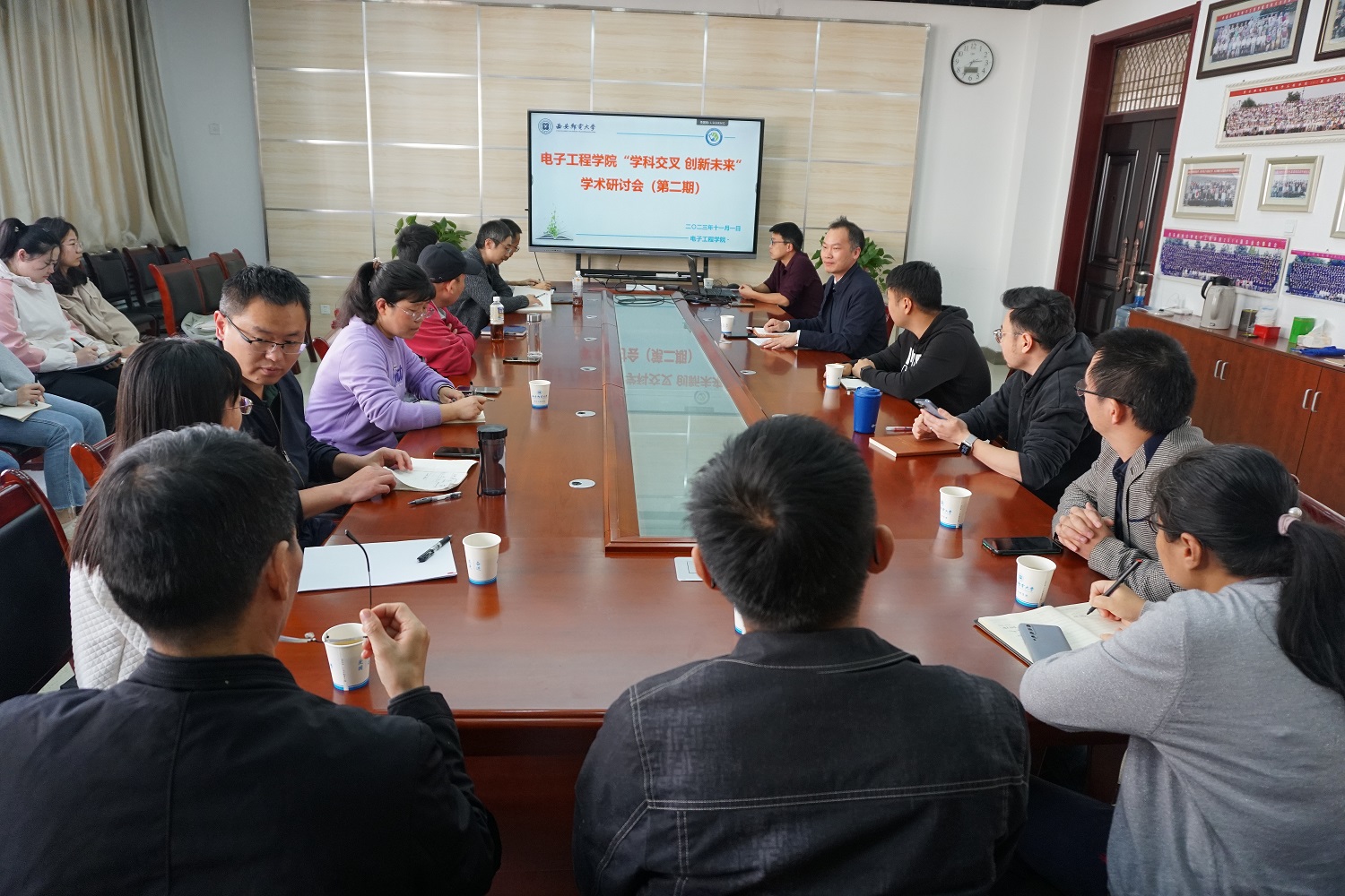 最后,董军代表学院感谢积极参加学术交流的老师和同学们。并指出,本次研讨会主题聚焦“传感”,邀请三位老师分别从“声”“光”“电”角度展示“传感之魅力”,既有基础理论研究,又有工程应用落地,既突破专业学科界限,又力求交叉深度融合,达到了举行研讨会的预期效果。学院启动系列研讨会,旨在畅通跨学科科研人员交流渠道,迸发学科交叉融合新思路。学科交叉是创新的突破点,推进学科交叉就必须要破除壁垒、创造条件,让学科交叉成为创新的“水源地”;学院层面将积极构建好评价和资源分配等政策机制,开展有组织科研,统筹资源,为师生开拓创新做好保障服务。