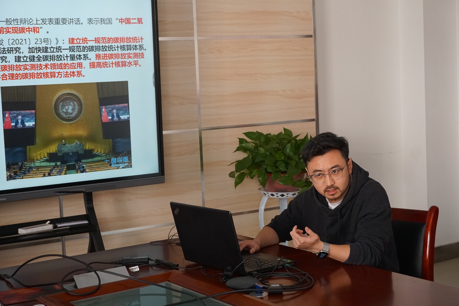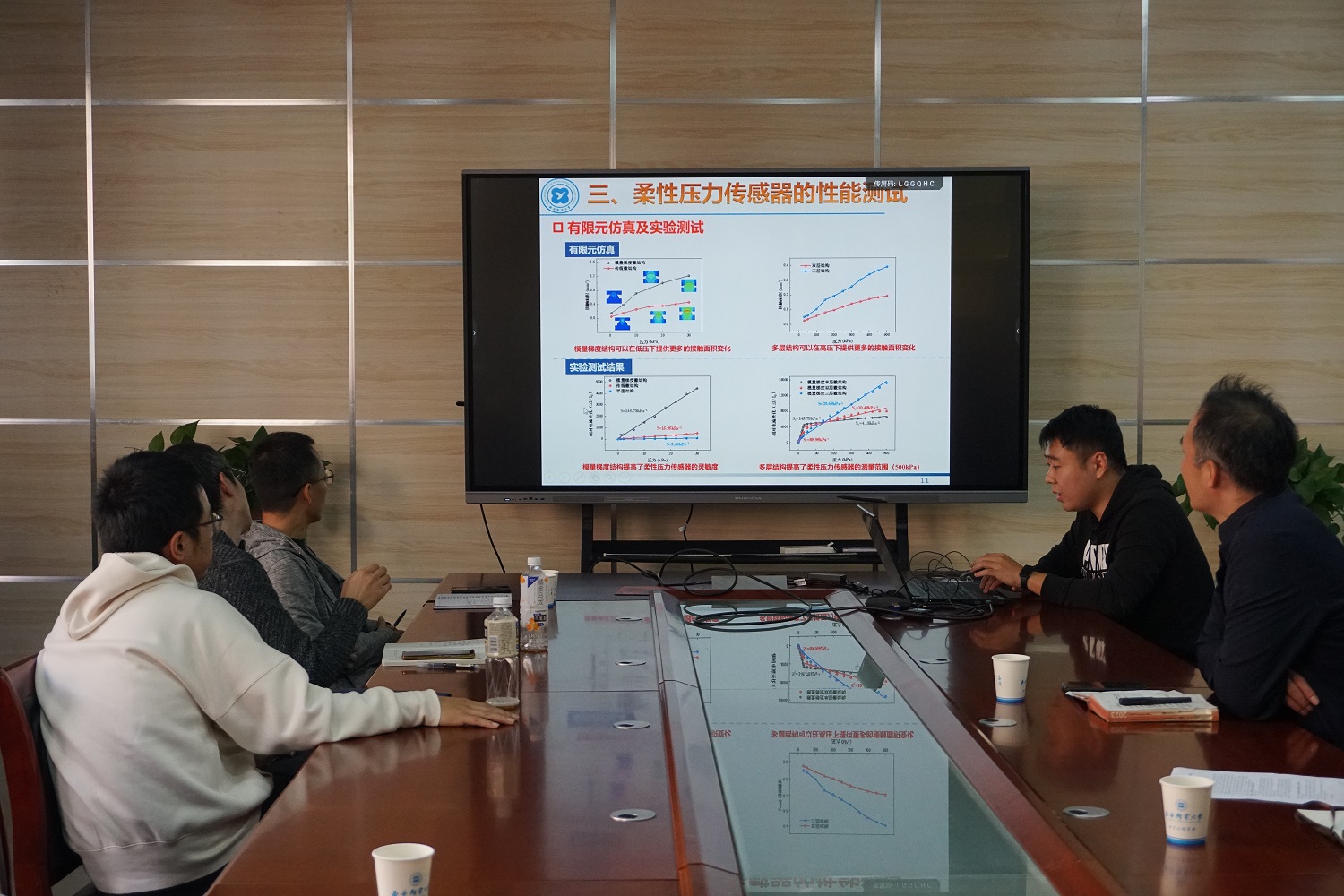 在学术报告分享环节。严学文老师介绍了团队在高压设备绝缘监测与智能诊断相关工作进展,包括基于分布式架构的高压电缆局部放电监测系统、基于MEMS麦克风阵列的声学成像仪,其中技术难点包括高频电流传感器设计、信号检波放大、特征提取、信号分类与智能诊断、声学传感器阵列排布及波束成形算法等。并重点介绍了如何在海量的物联网边缘端,通过低成本、有限算力的单片机,实现高速信号的数据采集,通过人工智能技术实现放电类型识别,排除现场电磁干扰信号。梁磊老师首先介绍了国家碳监测试点工作的背景和该领域对高精度大气温室气体监测的重大需求。在此基础上,系统介绍了铜川市碳监测试点工作进展情况,涉及到地面监测点位选点及建设、高精度地面监测站点质控与运维、走航及无人机监测等工作。最后,阐述了团队在光声光谱技术方面的产学研成果以及技术储备情况,并就产业化及技术的应用落地进行分享交流。孟祥煜老师首先介绍了柔性电子及柔性压力传感器的研究进展,总结了压阻式柔性压力传感器在实际应用中出现的低灵敏和低线性测量范围等问题;其次针对该方面问题详细阐述了传感器的设计思路与具体结构,并通过结合仿真和实验对结构性能进行验证。最后,阐述了传感器在人体信号检测及可穿戴电子方面的应用。
