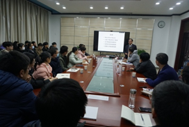 董军代表学院对余金中教授来学院讲学表示热烈欢迎和诚挚感谢,并向余老师汇报了学院在人才培养、学科建设和科研成果产业化等方面取得的成绩。