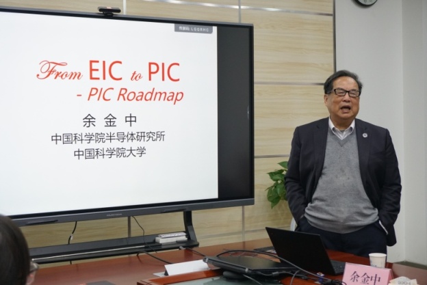 在报告环节,余金中教授介绍了电子和光子的特性与区别,并用通俗的语言描述了摩尔定律的发展历程,介绍了光子集成的概念、特性、平台以及光子集成的关键技术。他指出,高速、低功耗是光子集成的优势,三维集成是未来的发展趋势,光子集成将在光通信、计算、传感和医疗等领域中广泛应用,是国际科技的竞争焦点。最后,余金中教授向与会人员展示了几种最新的硅基光子芯片以及硅基光子集成路线,并总结了信息技术的发展趋势。