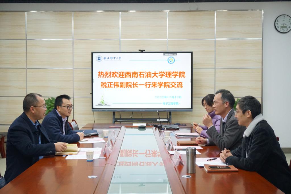 (通讯员:乔琳)12月12日下午,西南石油大学理学院副院长税正伟,物理实验中心主任、党支部书记邱毅来我院进行研究生教育管理、光电信息工程专业硕士学位授权点学科建设等工作调研交流。学院副院长董军、光电子技术系光电信息工程实验室主任任凯利、学科与科研秘书乔琳参加交流。