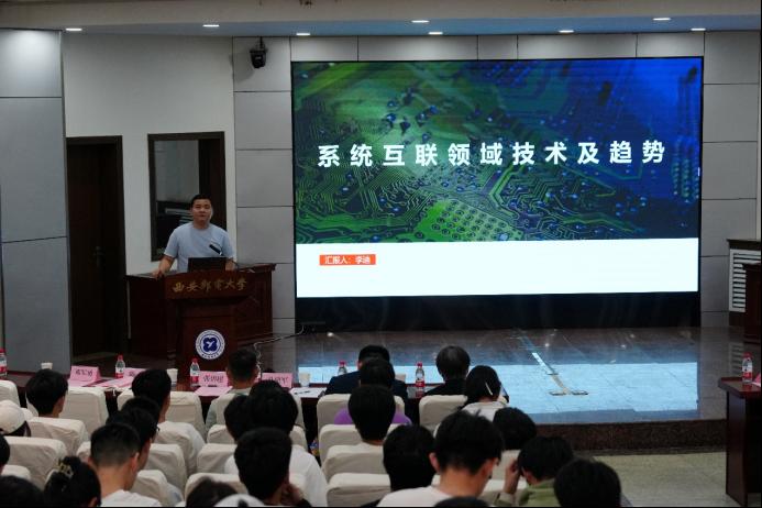 西安微合智联科技有限公司设计部门经理王明明(04级电子信息科学与技术校友)作了题为“芯片验证的技术演进和前沿技术介绍”的报告。王明明校友为大家详细介绍了芯片验证技术在芯片开发中的必要性,并对芯片验证中的关键技术及环节进行了介绍,也对芯片验证技术未来的发展进行了展望。