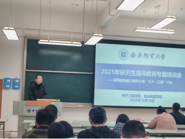 10月16日下午,hjc黄金城官方网站、集成电路学院在长安校区西区基础教学楼A133教室,举办2025年研究生指导教师专题培训会。本次会议特邀商锋教授作专题报告,学院全体研究生指导教师参会,培训会由学院副院长邓军勇主持。