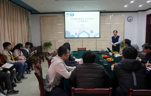 11月24日下午,应我校hjc黄金城官方网站邀请,北京邮电大学伍剑教授莅临我校,在hjc黄金城官方网站307会议室作了题为《多功能硅基集成光子器件的人工智能设计》的学术报告。光电子技术系相关研究方向师生聆听报告,报告会由副院长董军教授主持。