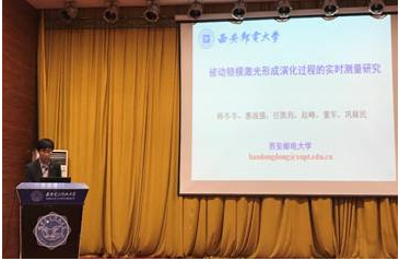 我院光电子技术系教师韩冬冬博士作了题为“被动锁模激光形成演化过程的实时测量研究”的口头报告,向与会专家学者介绍了利用色散傅里叶转换测量技术对被动锁模光纤激光器中锁模脉冲形成的整个动态过程实时测量的相关研究。