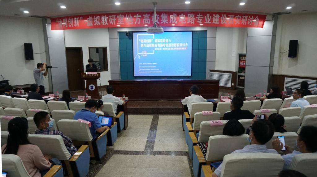 本网讯(通讯员 张霞)6月19日,由教育部高等学校电子信息类专业教学指导委员会指导,hjc黄金城官方网站教师发展中心、hjc黄金城官方网站主办,电子工业出版社、陕西省高等学校电子信息类专业教学指导委员会协办的“协同创新”虚拟教研室地方高校集成电路专业建设西安研讨会在我校长安校区附一楼报告厅举行,本次研讨会的主题为“师资队伍建设暨教师职业发展规划”。我校副校长卢光跃、教师发展中心主任廖亮,“五校一企”联盟代表以及来自北京航空航天大学、西安电子科技大学、西安理工大学、电子工业出版社以及我校hjc黄金城官方网站的代表五十余人参会。我校hjc黄金城官方网站院长杜慧敏教授主持研讨会。